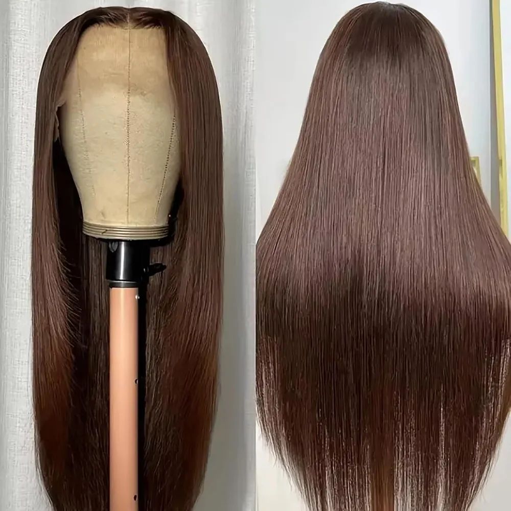 Human Hair Wigs 20 inch HD Lace Front Wigs Chocolate Brown Color 150% Density Straight Hair Lace Wig