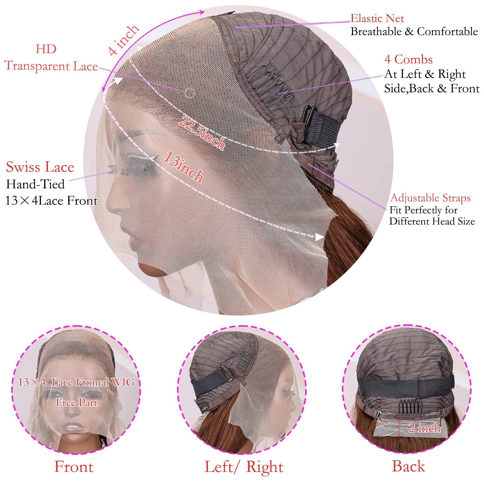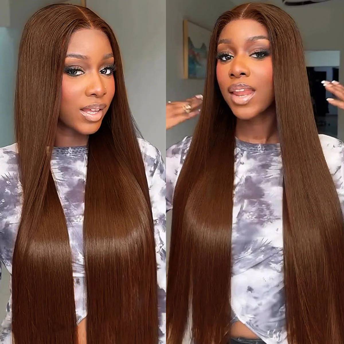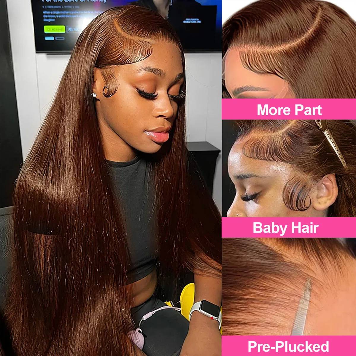 Human Hair Wigs 24 inch HD Lace Front Wigs Chocolate Brown Color 150% Density Straight Hair Lace Wig