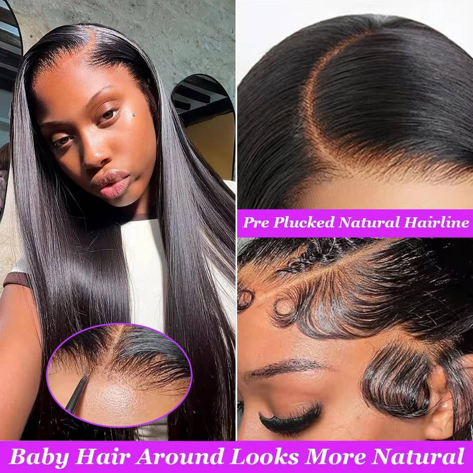 150% Density Straight Hair Lace Wigs with Baby Hair,Natural Hairline.