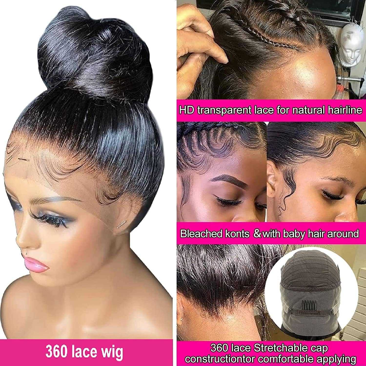 150% Density Straight Hair Lace Wigs with Baby Hair,Natural Hairline.